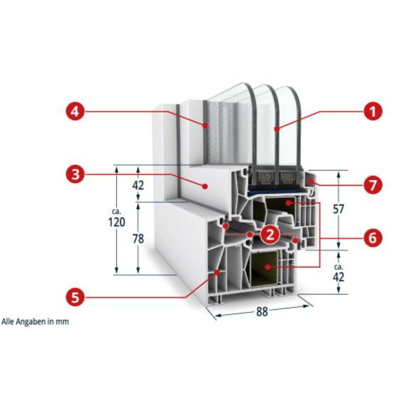 82 mm Bautiefe, Mehrkammer‑Profil und Mitteldichtung (MD) für Top Wärme‑ & Schalldämmung